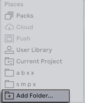 In order to work with your own folders in Live, you must first add them to the browser, either by dropping them directly into the Places section from the Explorer (Win)/Finder (Mac), or by using the Add Folder option in the browser’s sidebar.