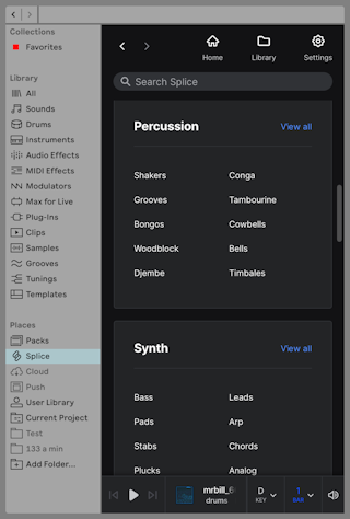 - Drums — all of your drum presets. This includes default drum devices, drum presets (full Drum Racks and single drum hits), and drum samples (loops and one shots). In addition, any item tagged with the Drums.