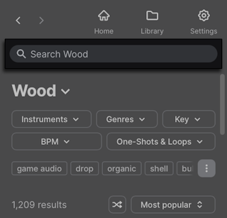 To find browser content, type your desired search term(s) into the search bar. The results will include files that match all search terms, as opposed to any. For example, if you search for “electric bass” any items containing both “electric” and “bass” in their filenames will be displayed.