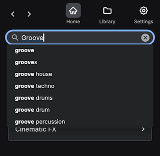 It is also possible to search for content via tags by typing # into the search bar followed by the tag name, e.g., #Drums. Auto-complete suggestions for tag names will appear as you start typing after the hashtag.