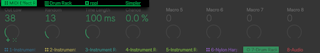 Green — there are clips playing in that block (though that may not be the block of clips selected).