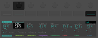 Pad Grid – Push’s 8x8 pad grid is fully MPE-capable. You can play notes directly on the pads in the 64 Notes layout, or step sequence notes using the Melodic or Drum Sequencer.