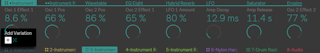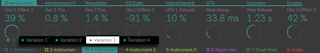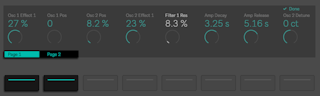 Automate – Toggle to turn automation recording on or off. The Automate button will appear in red when on and white when off. When on, any parameter changes you make using the encoders will be recorded into the clip. Automated parameters will have a white dot next to the parameter name in Device View, while parameters that have overridden automation will have a gray dot next to the parameter name. Hold Shift and press Automate to re-enable any automation that you have overridden. Hold Delete and press the Automation button to delete all automation in a clip.