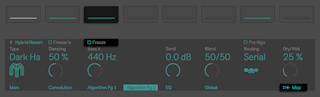 In Tune Location – Determines how pitch bend is initiated when the pad is touched. When set to Finger, the location where you first place your finger on the pad has zero pitch bend, and sliding horizontally causes the pitch to bend. When set to Pad, the center of the pad always has zero pitch bend, and placing your finger elsewhere immediately bends the pitch based on the distance from center.