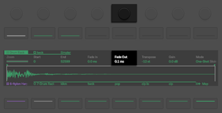 Scenes & Repeat Intervals – These buttons have different functions depending on what mode you are in. In Note Mode, you can use the Repeat Intervals buttons to set the beat divisions of the step sequencer and grid, as well as use them in conjunction with the Repeat button to add repeated notes in the various beat divisions. In Session Mode, you can use the Scenes buttons to launch scenes.