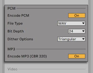 - File Type — WAV, AIFF, and FLAC formats are available for PCM export.