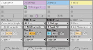 Perhaps you wonder why this works, given that the string track’s output is audio and not MIDI. When routing MIDI in from another track, we are tapping the MIDI at the latest possible stage, which is after any MIDI Effects, and just before the instrument.