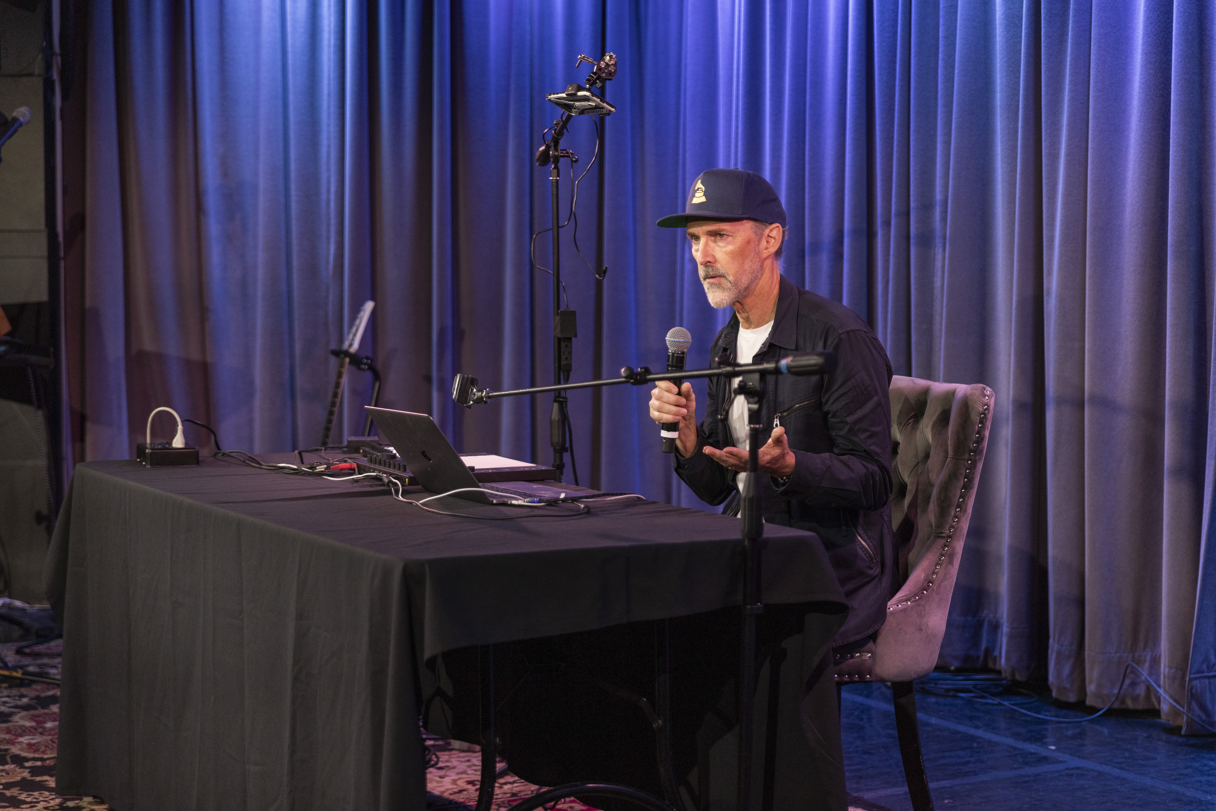Musician and inventor Moldover walked us through the design of Beat Nexus and the Vocal Booth. For anyone following along at home: he has also shared a free Max for Live device that recreates the experience of Beat Nexus in Ableton Live, turning any 4-octave MIDI keyboard (or even just a mouse) into a playful plugin version of the exhibit.
