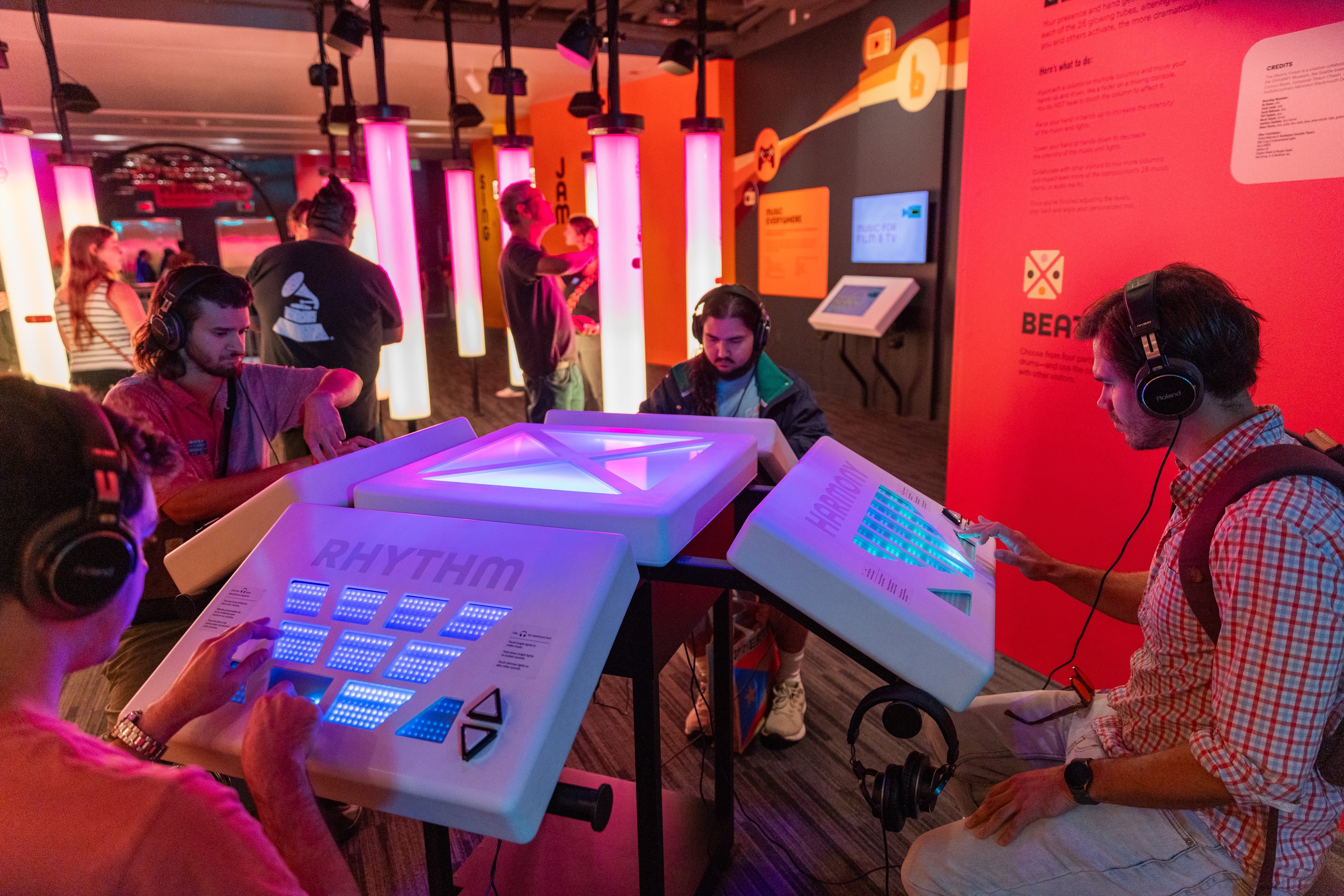 Beat Nexus features four panels, each encouraging visitors to explore beats, bass, harmony, and melody