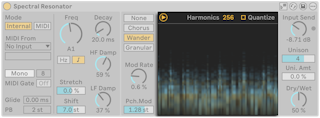 In the upper right corner of the spectrogram display, you will find the Resolution control, which sets the resolution used to process the incoming signal. Lower values reduce the overall latency at the cost of accuracy and fidelity. Note that since higher values affect overall latency, you may wish to reduce the Resolution while tracking.