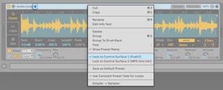 注:コントロールサーフェスによっては、デバイスへのロックに対応していないものもあります。 詳しくは、コントロールサーフェスリファレンスレッスンに記載されています。 [表示]メニューから[ヘルプビュー]を選択し、Liveに内蔵されているレッスンにアクセスできます。
