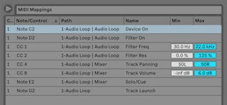 - MIDIコントローラーのキーボードのキーを押したり、ノブを回したりしてMIDIメッセージを送信します。 新しいMIDIマッピングがマッピングブラウザーにリストされます。