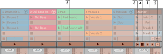 Liveは、反転したシーンをセッションビューの中央に表示します。 セッションのマッピングを利用すると、大きなLiveセットの操作に便利です。