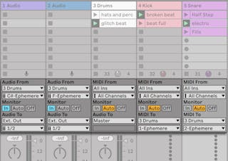 Live’s mixer and external routing devices allow for inter-track routings. These routings, albeit potentially confusing, enable many valuable creative and technical options. Via the mixer, inter-track routing can work two ways: