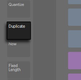 - Duplicate creates a copy of the currently selected clip in the next clip slot, while continuing playback of any currently playing clips in other tracks. Hold Shift while pressing Duplicate to create a new scene containing all of the currently playing clips.
