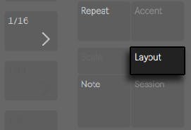 Layout — Press to change the layout of the pad grid. When in Session Mode, Layout toggles the Session Overview on or off. When in Note Mode, the layout options depend on the type of track that is currently selected and the current mode.